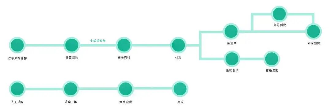一般的采购活动都有以下几个步骤:资源调查、供应商认证——询价及洽商——生成请购单——下达采购单——采购单跟踪——验收入库——结算。