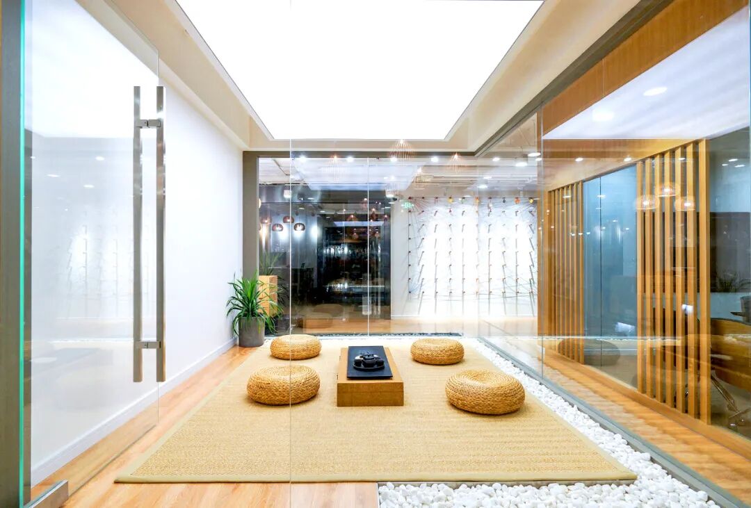 为了让工作中的人们也能延续生活中的社交方式,整体空间以透明“盒子”的形式帮助老茶馆在现代化的办公场景中新生,并通过反相的手法将茶室这一空间设计为独立的象征存在,让使用者在进入空间的同时却有仿若身处室外的感受。
