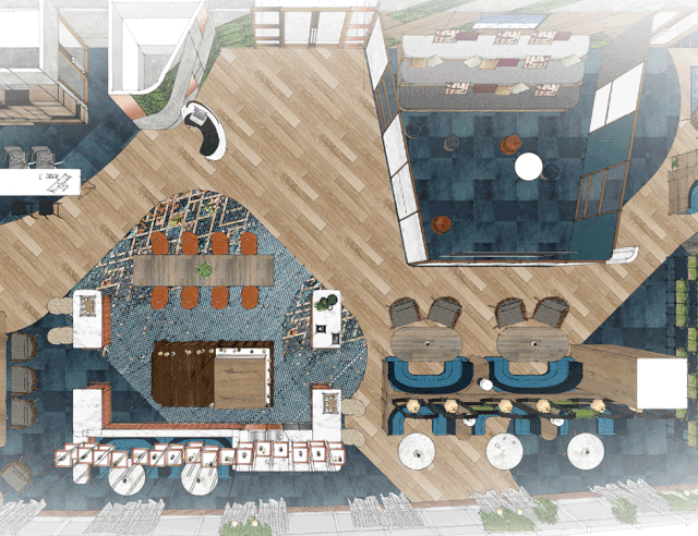 办公场所内设有多种便于开展合作的开放区域,延伸出建立联结的机会。这一设计上的改进旨在促进公司的整体文化转型。