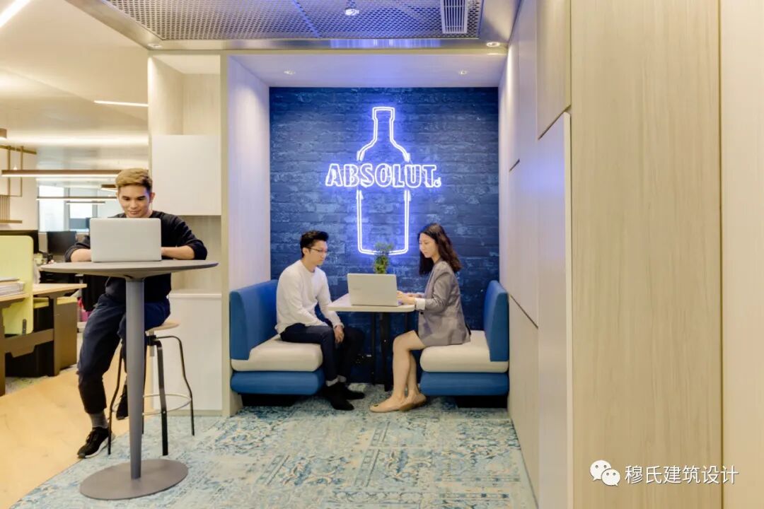 “开放式办公室变成了前区的自然延伸,让我们通过会议与合作空间来展现保乐力加旗下各种各样的品牌;由此产生的多维度设计概念着眼于每一种产品的品牌故事与历史。”