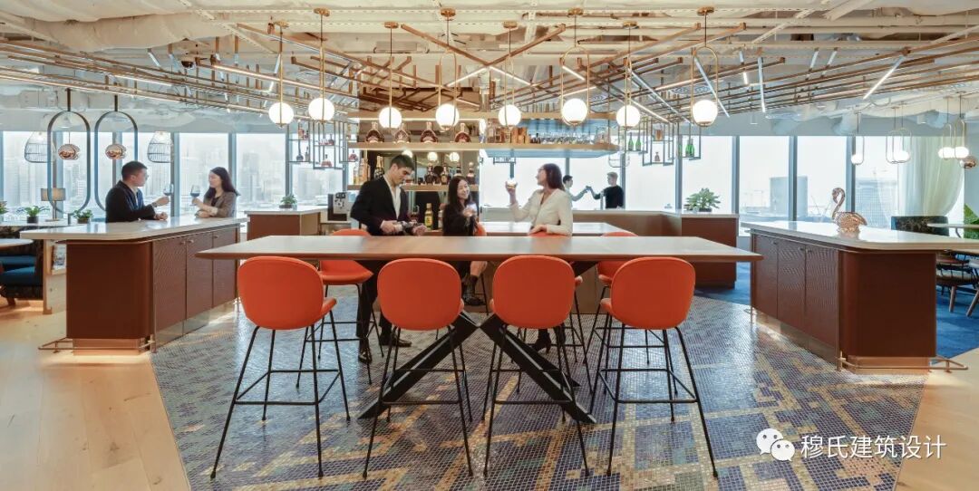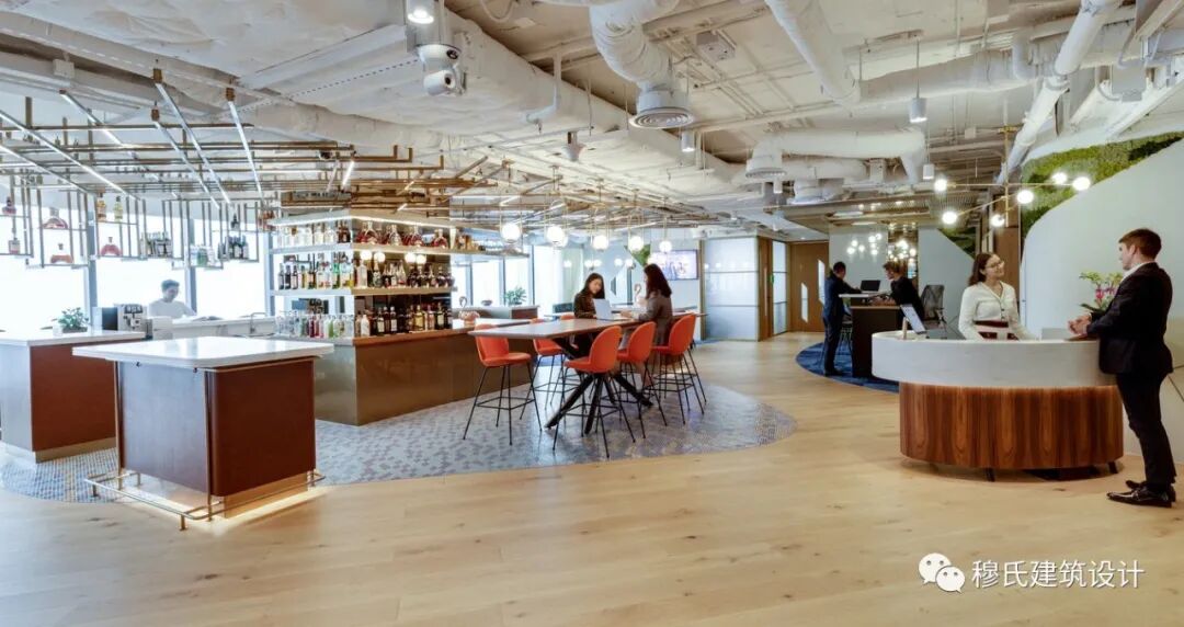 位于前区中心位置的酒吧将休闲和尊贵氛围相融,避免了浮夸的视觉效果,有效地彰显了公司价值观中备受推崇的简单、开放、直接的文化。