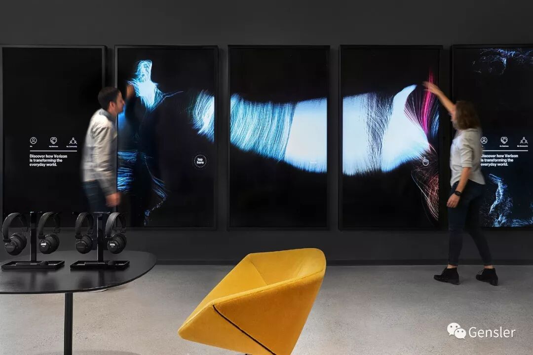 数字化体验屏幕为员工奉上沉浸式体验,讲述故事并激励员工。员工可以随意浏览Verizon的互动式触控显示屏,了解有关公司的更多信息,所有内容均以多彩数字化的形式有趣地呈现在显示屏上。