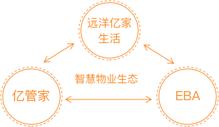 通过借助远洋亿家生活、亿管家和EBA三大智慧服务平台,远洋亿家实现了与业主和合作伙伴共享、共建的智慧物业生态圈。