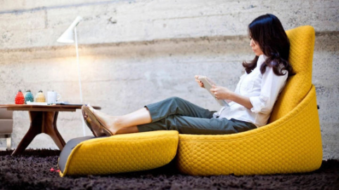 普通的办公区,大部分都是伏案工作,但是舒服的工作姿势未必是双脚着地、正襟危坐,有可能给员工一个比较放松的区域,更能够促进其工作效率和创新。