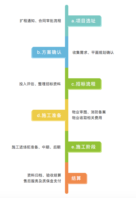 从广义上来看,整体装修项目涵盖了从选址、到制定方案、施工以及结算的整个过程。整体装修项目的全流程可以简单概括为:选址、确认方案、招标、施工以及结算。掌握了项目的全流程,就可以对装修工作有一个全面的了解,对监督验收工作的实施有很大帮助。