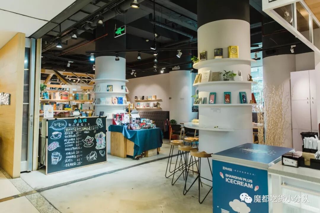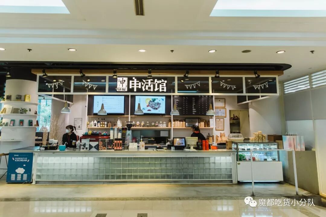 一楼的申活馆是一个集休闲和卖文创于一身的小店。店内提供正餐,售卖蛋糕甜品还有饮品,在大楼里工作的媒体人们还能享受亲友价哦。