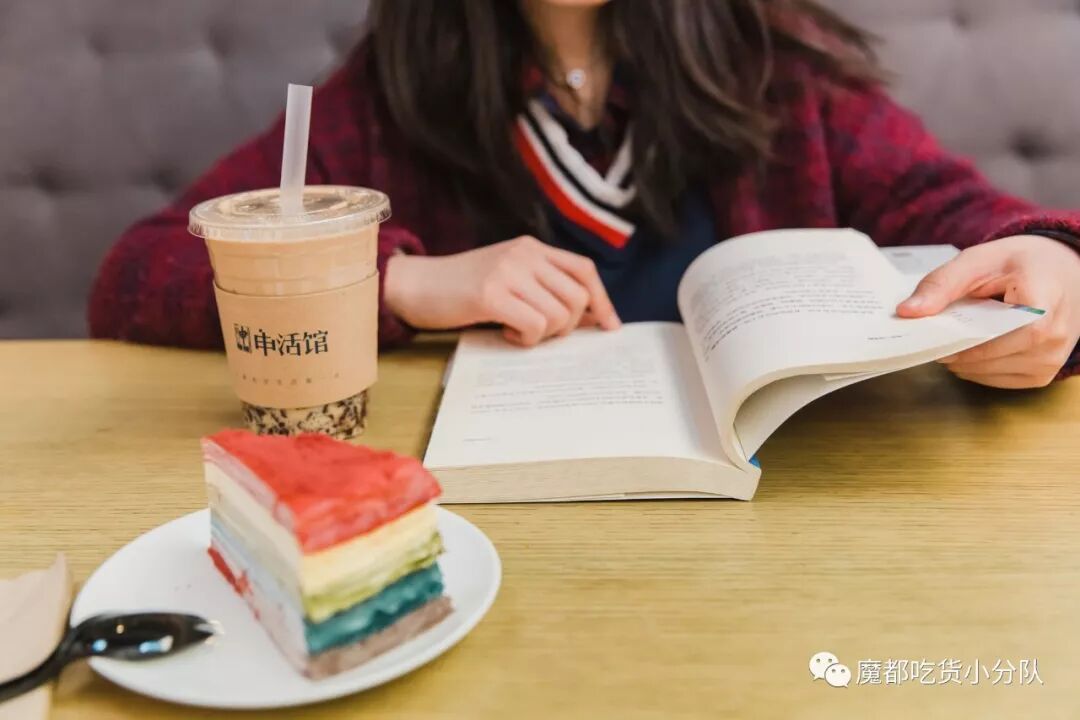 申活馆的血糯米奶茶搭配红丝绒彩虹千层,奶茶浓香纯正,血糯米软糯可口,颜值高的彩虹千层不止好看吃起来也不会觉得甜腻。