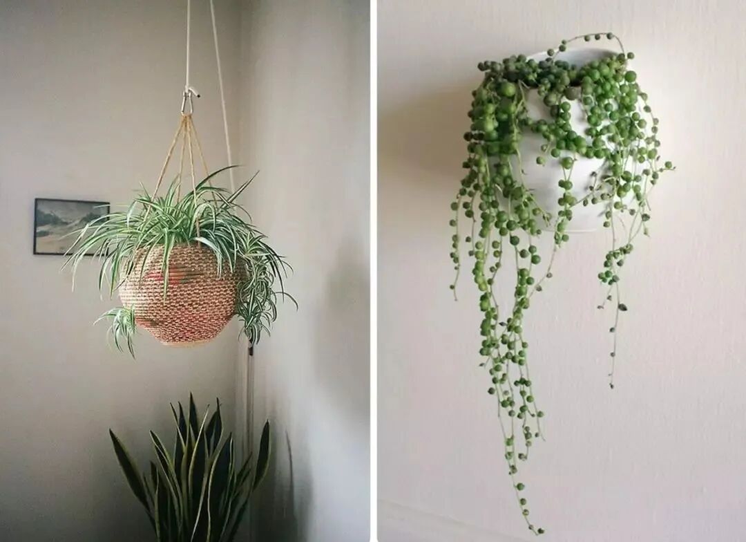 悬挂植物:空气凤梨、吊兰、珍珠吊兰、爱之蔓
