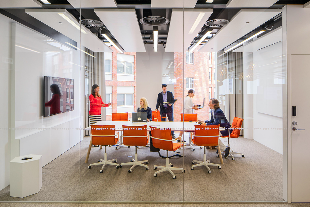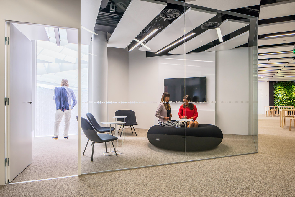 长廊同样拥有令人惊叹的玻璃屋顶,当阳光透过屋顶射入室内空间,明亮舒适的氛围自然而生 ▼办公空间的设计也很丰富,除了有安静专注的空间,也有更加看重积极互动和团队合作的空间。餐厅以及会面区的设计也具有通透明亮的氛围,同时更加注重温馨的氛围,大量采用了木材,并且色调也更加柔和温暖 ▼而正式的办公层设计则是有着更加丰富的配色,并且采用了开放式的空间,更加有活力 ▼