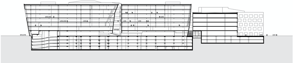 OP 总部大楼的外观非常宏伟,不同于一般采用矩形外观的楼宇,它的外立面充满各种「折线」元素以及层次分明的玻璃窗户 ▼整栋大楼犹如雕塑般的巨大体量,让人联想起经历过冰河时期的冰川巨石,有一种非常稳重的气质。