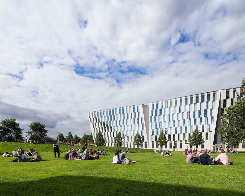 我们曾经介绍过非常多充满设计感的总部大楼,但芬兰最大的金融集团 OP 的总部,却依然用充满美感和特点的设计震撼了我们。这个总部大楼位于芬兰赫尔辛基的达拉佩公园附近,由事务所 JKMM Architects 操刀设计 ▼OP 金融总部大楼附近就是颇受当地人欢迎的达拉佩公园,整栋建筑成为了公园绿草坪的一个景色优美的「背景」▼接下来我们从建筑外观以及室内两个方面来说说这栋总部大楼的设计。
