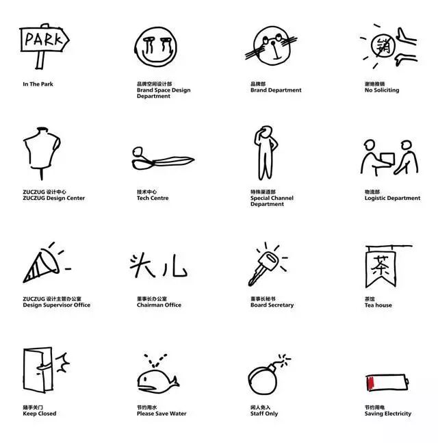 小知找到了一些不同风格的优秀导视系统案例,一起来看看吧!一般情况下,办公区每层楼入口处都会有一个平面图,展示本层楼的空间分布和空间名称。Kidzania美国办公室的平面导视图,用阴影、白色、绿色来代表不同区域,功能分布一目了然。积木撘成的平面分布图让人眼前一亮。不仅展示了功能区分布、各功能区的作用,而且积木块的使用,让这个分布图更加立体,易于记忆。下面这个平面图,各个区域层叠打造出了2D效果。渐变蓝色和白色的组合更加突出了空间内的通道,整体充满了科技感。楼层标识也要有设计感。德国屋顶贸易公司sokadach把楼层数字做成跟墙面一样高,旁边还配上了所有楼层的功能介绍指引。不仅是标识,也是一种装饰。四维图新的楼层标识设计也极具特点,每一个数字中的一部分,都是由一个点出发,通过线的缠绕连接到达另一个点来。就好像是地图上的点与点之间的连线,经线和纬线相互交织交缠,构成企业内部协作和企业文化基因互通的“经纬网”。坐落在韩国的爱茉莉太平洋总部,在楼层设计上融入了民族文化的元素,简单几何线条勾勒出山、水,简约而不简单。Werkheim Uster办公室标牌导示设计由原木颜色和简单的立体数字线条组成,打造出一种自然舒适的格调。农夫山泉楼层的导视用阿拉伯数字去呈现,每个楼层对应的数字在同一边,构成了一个整体。(强迫症人士表示极度舒适)新浪总部用英文字母划分办公楼区域,亮色和立体浮雕风格的运用,中和了整体灰色调的严肃氛围,十分醒目。谁说楼层标志一定要在空中?广田集团总部这样把数字做成立体落地式就很值得借鉴!鲜亮的颜色打造视觉焦点,立体设计让它不仅是指引导视,更像是空间里的一个摆件,个性十足。新浪总部把指路牌做成盒子状,鲜亮的绿色为空间增添活力,简单的字体与图形简洁明了,很有科技公司的风格。德国sokadach把方向指引和空间分布相融合,线条简单,形式巧妙。Patane图书馆导视设计表现出了文化中的沉淀与稳重。木色长方块造型复古,白色字体时尚简约,无声中展现了建筑本身的历史与文化。Kidzania美国办公室的的标识系统结合了内部工业风的装修风格,使用大量的喷漆、模具和大标志,画在地面的指引使整个空间简洁而干练。从不同的会议室标志,我们能直接看出这个公司的气氛。端正的罗马数字、规则的线条阴影还有鲜亮跳跃的颜色运用,把广田集团的稳重而不失活力的形象展现得淋漓尽致。时装品牌ZUCZUG在上海总公司导视系统设计中,运用了大量的可爱图形。会议室的圆脸团自带萌点,看见它,开会再也不是一件让人压力山大的事情了~农夫山泉办公室导视系统设计融合了公司的设计风格,用极简的线条去描绘每个领域的功能。会议室的图标,用对话框的表现形式搭配上三个圆点,展现区域功能的同时,弱化了严肃感。如果用一个图形代表茶水间,你会想到什么呢?农夫山泉选择了用一个圆滚滚的水壶来做标识。水壶是茶水间的功能体现,而圆滚滚的造型,则让人在走进去之前,就开始放松了~sokadach用一杯热咖啡来代表茶水间,形象的图案仿佛在说:来喝一杯热咖啡休息一下吧!要说哪里能低调地展现空间设计感,卫生间肯定当仁不让。爱茉莉太平洋集团把经典的火柴人造型做了变化,流畅的线条、富有质感的金属材质,无一不在彰显着集团的时尚力。ZUCZUG上海总公司导视的图形使用了网络图形绘制,手写版「女」「男」,还有简单形象的禁止吸烟造型,幽默有创意,让办公室氛围更加轻松。伸长的手臂不仅指明了方向,还能让人读出其中的潜台词:客官~您这边儿请~~(请用北京口音朗读)门上图案与地毯相连,不仅巧妙地指引了方向,还形成了一种落日余晖般的投影效果。当不采用简单几何线条,而把厕所的导视设计赋予性格和身份,这样是不是就更有趣了?除了主要功能区,小知还发现了两个很有设计感的标识。Patane图书馆储藏室,用一把锁来表示,是不是十分形象?不仅代指储藏室,还能提醒你记得锁门。农夫山泉在门上写了「推」「拉」两个字,设计与使用性俱佳。对于园区导视系统来说,主要呈现的是建筑物的分布和行进路线。位于莫斯科南部的一个新型综合生活区Yasny的导视很值得借鉴。他们他们采用鲜艳的颜色来吸引视线,圆润的不规则形状和简约线条,清晰地展示出建筑信息。路牌式的方向指引多用在路口。采用鲜艳的色彩能巧妙地引导行人来往于各个重要空间 、明确标示的平面图更协助人自我定位,进而能计划如何去目标地。在导视系统设计中,停车场系统往往容易被忽略。停车场标识在跟整体统一的同时,应该多使用饱和度较高的鲜艳颜色。由于偏暗的光线及车辆的繁杂,醒目的色块更能引起注意,提醒来往人员车辆,避免出现意外。农夫山泉停车场的标识就打破了极简的性冷淡风,用比较亮眼的绿色、黄色的几何色块作为底色,搭配上相应代表性的图案,以此来作为引导。导视设计是一个完整性、规范性的系统。它不仅提供空间信息、帮助认知、理解、使用空间,同时也是建立人与空间之间更加丰富、深层关系的媒介。做好导视系统的设计,不仅能让导视拥有更好的实际效果,还能提升环境发展价值和服务品质,同时也是企业文化的展现。 #今日互动#