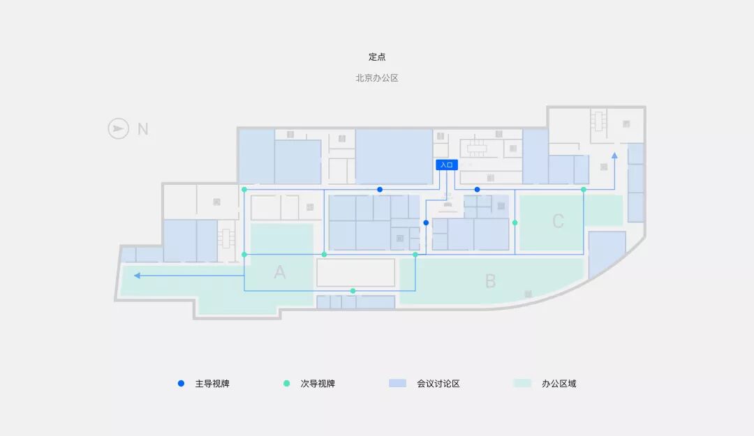 a. 粘贴式:制作成本较低,但是需根据具体的场景来进行设计安排,每个场景需实地测量,安排位置及大小,对墙面的要求较高。在长期的使用过程中,容易污损或脱落,有较高的维护成本。b. 站立式:制作成本很高,一般适用于较大和多楼层场景,比如园区、挑高复式办公楼中央大厅等。c. 招牌式:制作成本一般,可制作好之后直接安装于墙面,同时也能适用于各种复杂墙面,能够很好的适应各种场景,相对来说比较灵活,可复制性强。在规划导视系统时,行政需要做导视定点。定点决定着办公区域内哪些位置需要放置导视牌,以及导视牌的种类和数量。合理的导视安放位置,目标明确指向清晰,能够有效的对室内人员进行分流,达到最佳的体验。以上图为例,从入口处开始到前台有三个方向前往办公区,每个方向靠里的可视范围内设置一个主导视牌,可以合理有效的分流人群,避免人群过于集中在中心区域,造成前台位置人员拥堵。将次导视牌放置在人员流动线的关键位置上,并让其清晰可见,保证流动衔接。在核心区域和走道设置明显的导视牌,以促进办公区和会议讨论区的相互协调,和整体动线的有效运行。确定了导视系统安放的位置之后,就需要统计需要设计的导视系统种类、还有不同种类需要的数量。a.导视地图:导视地图牌由区域平面图和功能区详情组成。一般放置在较重要出入口等人流量相对较大的位置,保证能够进入办公区后就发现导视牌,并寻找目的地的位置。b.指向牌:指向牌一般放置在办公区域内的重点通道或拐点,保证用户能够在面对分叉口时能够准确判断前行方向。c.标识牌:标识牌是导视系统的分散信息点,代表着每个区域的功能信息。根据不同的区域分为标识门牌和标识吊牌,不同的功能分为楼层、部门、工位、会议室、卫生间等。巧妙的设计规划,能呈现出惊艳的效果。在设计规划环节,主要有以下方面:企业在制作导视系统前期,需要结合自己的企业文化特点、整体装修风格来明确导视系统的设计风格。另外,设计风格也需要结合预算来考虑。导视系统的风格与制作息息相关,不同材质也决定着风格的不同。图标作为导视系统中必不可少的部分,具有高度整合并快捷传达信息、便于记忆的特性,某种程度上来说比文字会有更强的代表性。图标设计同样要结合企业文化来确定,线条图案极简清晰、拼接几何理智沉稳、简笔画有趣活泼...以地平线为例,在图标设计中以代表着地平线的圆形和线条为主,满足其功能性的同时尽量让其整体符合地平线品牌文化特征。