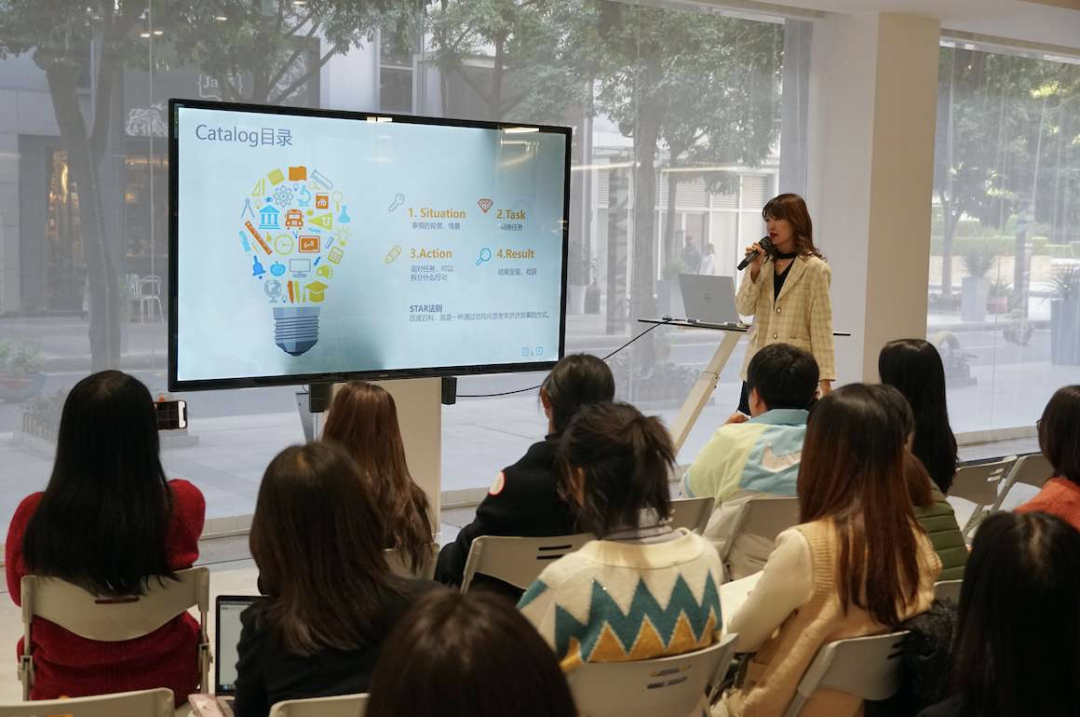 这也是于旻的管理法则,她鼓励团队学习,先自我不断学习,和工作有关的内容,她都会找一些课程譬如演讲课程、礼仪课程去学,学了回来她会复述给团队的小伙伴听,既是培训也是消化。