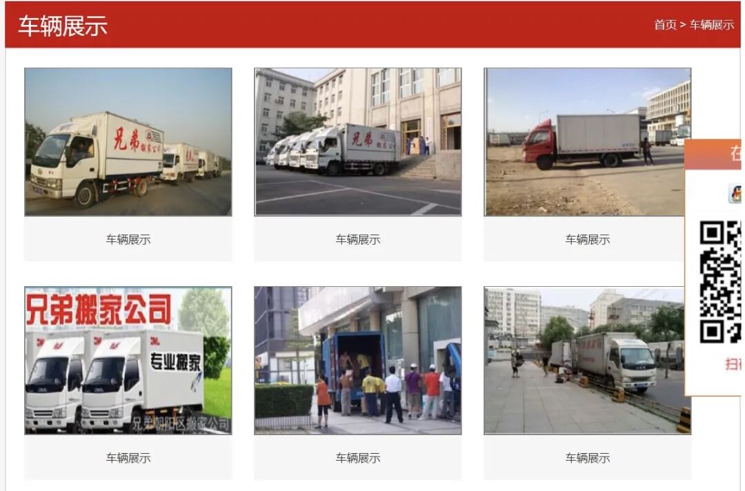 ▲四方兄弟官网的车辆展示页面,车厢上写着“兄弟搬家公司”。网页截图