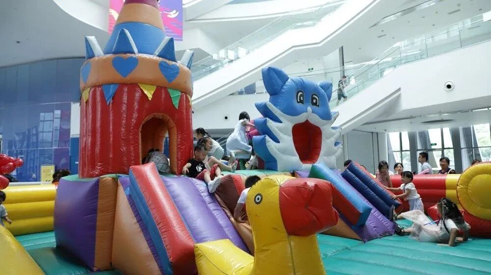 △苏宁搬了一座充气城堡回来,释放孩子天性