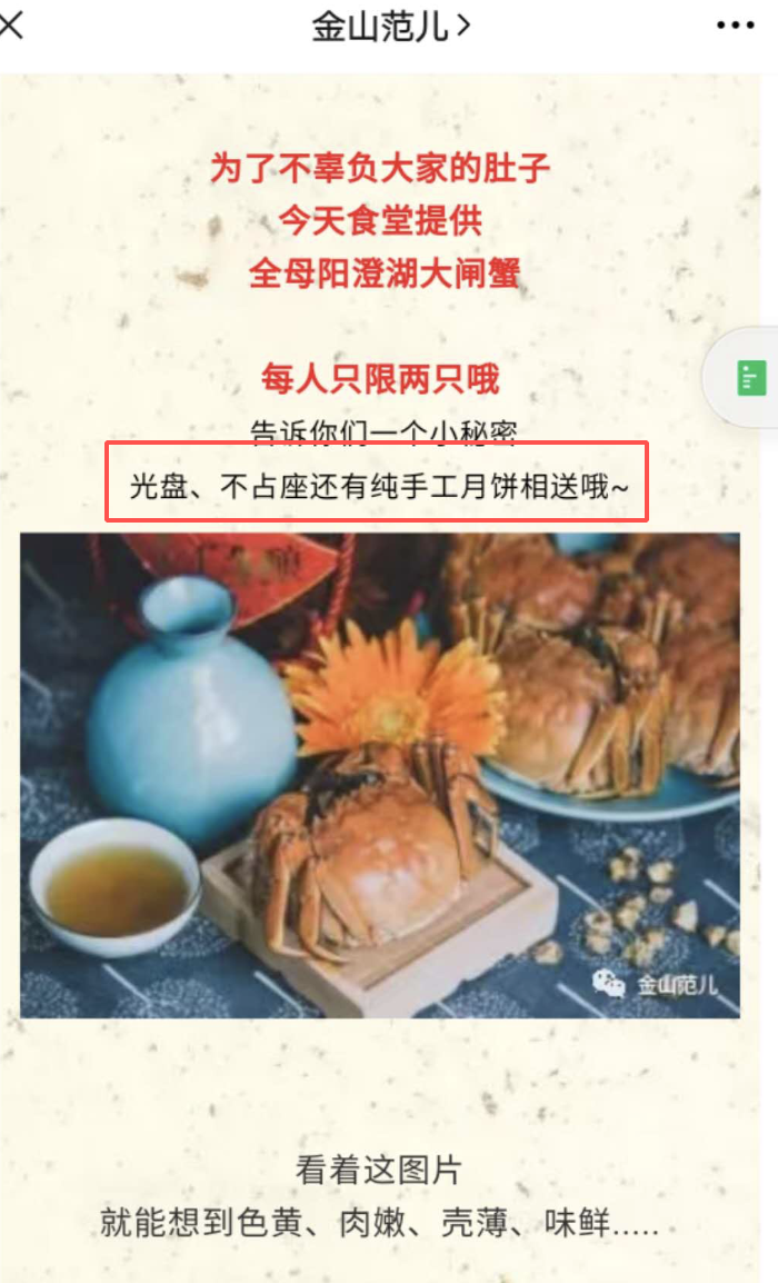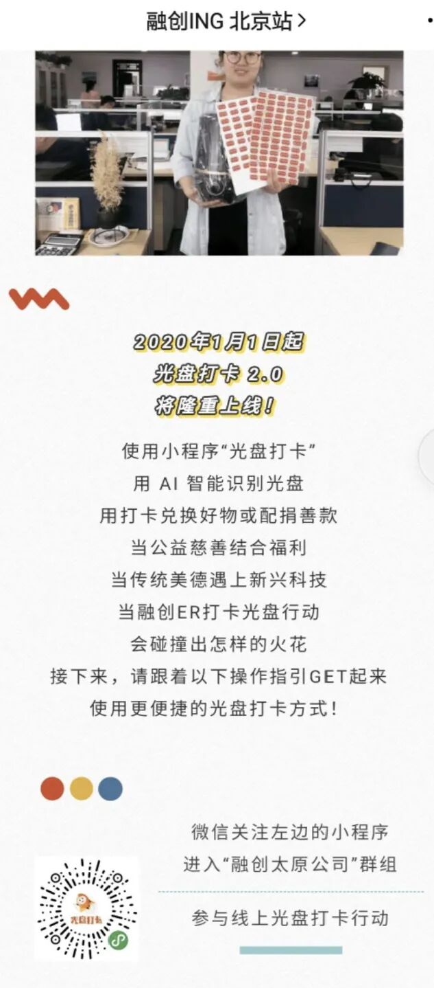 △与时俱进,融创太原公司的光盘打卡行为从1.0集贴纸进化到了线上打卡2.0版本,图源公众号融创ING北京站