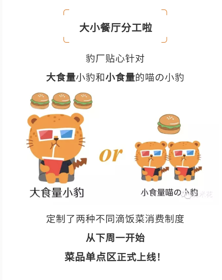 △猎豹为猎小豹定制了大小份饭菜消费制度,图源公众号豹米花