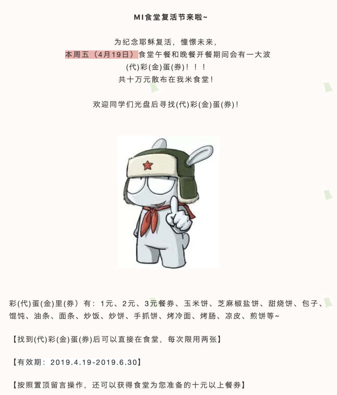 一个贴在盘子背面翻转盘子才能领到的奖,想领奖必须要光盘。当然,这只适合有食堂的公司使用,譬如小米。
