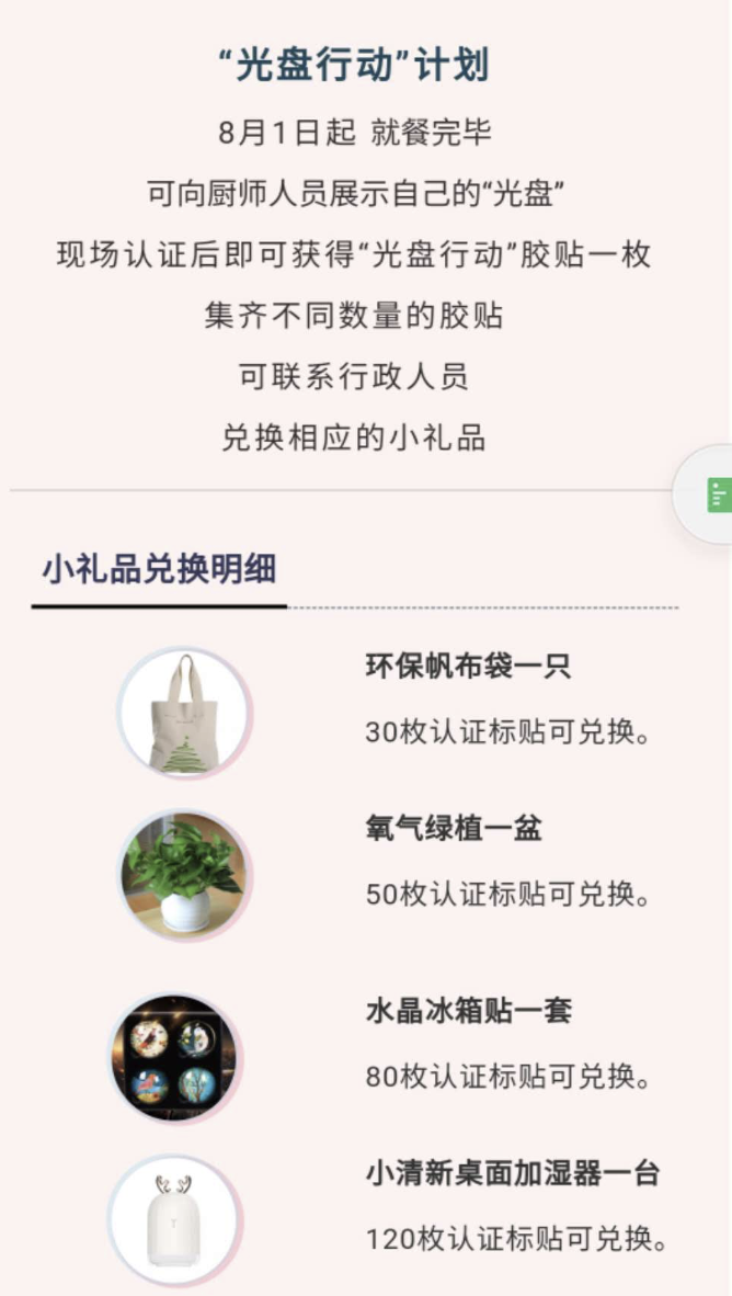 光盘行动的理念应该被内化到实践中,它所覆盖的范围不应该只局限在公司内,它应该被坚持融入贯彻到所有的公司行为之中。