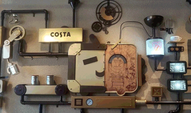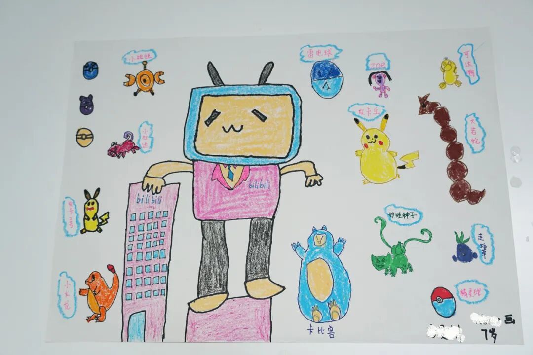 在大人眼里,B站是企业、是平台。那么在小孩子眼里,它是什么样的呢?为此,在今年儿童节,B站特地举办了一场活动,邀请员工子女画出「B站宝宝心目中的B站」。除此之外,B站还有一面文化墙,做成了相框串联的形式。上面的每一张照片、海报、插画都与企业发展进程密切相关。像一场别样的画展,令人印象深刻。在B站视频平台,有这样一句话:万物皆可B站,所有品牌都能与年轻人沟通。没想到这一点在线下也体现得淋漓尽致。总部大楼下的罗森商店和costa咖啡,里面充满了B站元素。机械小电视、2233娘主题的背景墙... costa还专门推出了一款B站套餐,连咖啡都是小电视定制款,这在其他公司十分少见。