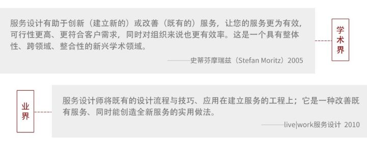 至今,服务设计都还没有一个明确的定义。但我们可以通过学术界及业界的一些典型观点来帮助理解:
