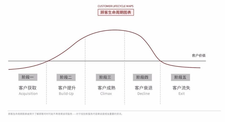 顾客生命周期图表展示了顾客从第一次接触服务,一直到最终停止选择使用这项服务的全部过程,常用于探索或反思企业的长线营销策略。顾客生命周期一般可以分为五个阶段:客户获取、客户提升、客户成熟、客户衰退、客户流失。我们可以通过思考不同阶段的关键问题来帮助决策: