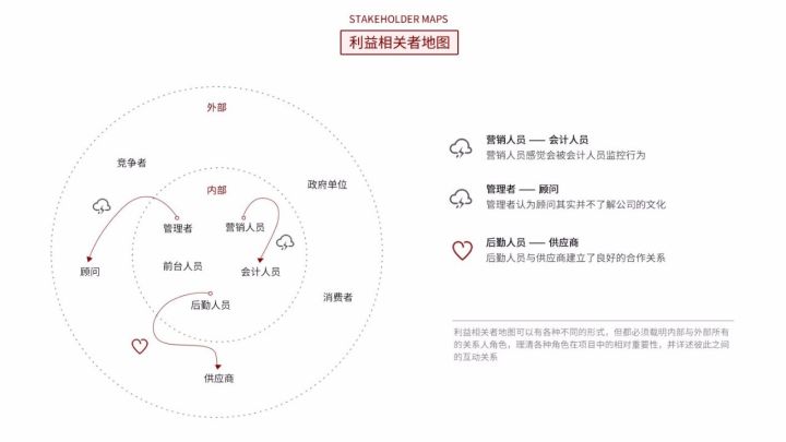 利益相关者地图能帮助我们站在更加宏观的角度思考问题,思考所有利益关系者所带来的影响,而不仅仅着眼于顾客和服务提供者本身。