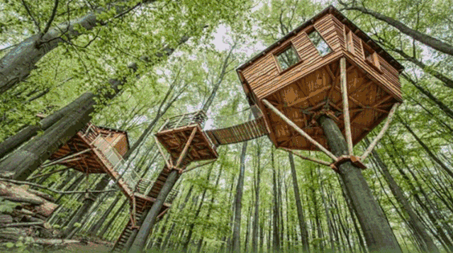 在这里住在高树与木架完美结合的树屋内,泡与众不同树上汤泉,逛附近的天门沟。