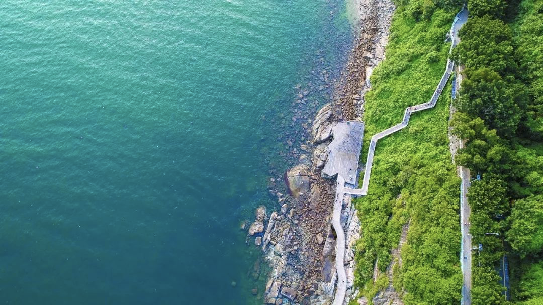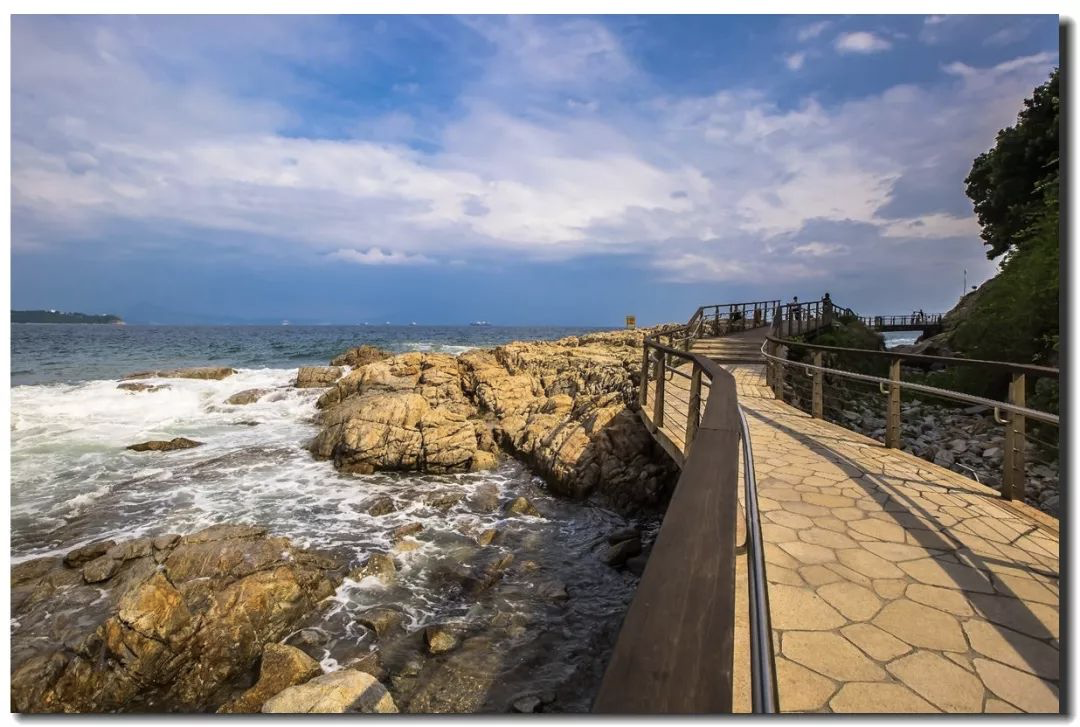 盐田区的海滨栈道,全长19.5公里,西起中英街古塔公园,沿着黄金海岸线串联起沙头角、盐田港、大梅沙,东至小梅沙公园。