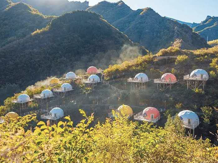 位于雾灵山景区旁,有15栋泡泡屋、27间别院和一套四合院,极有风味。