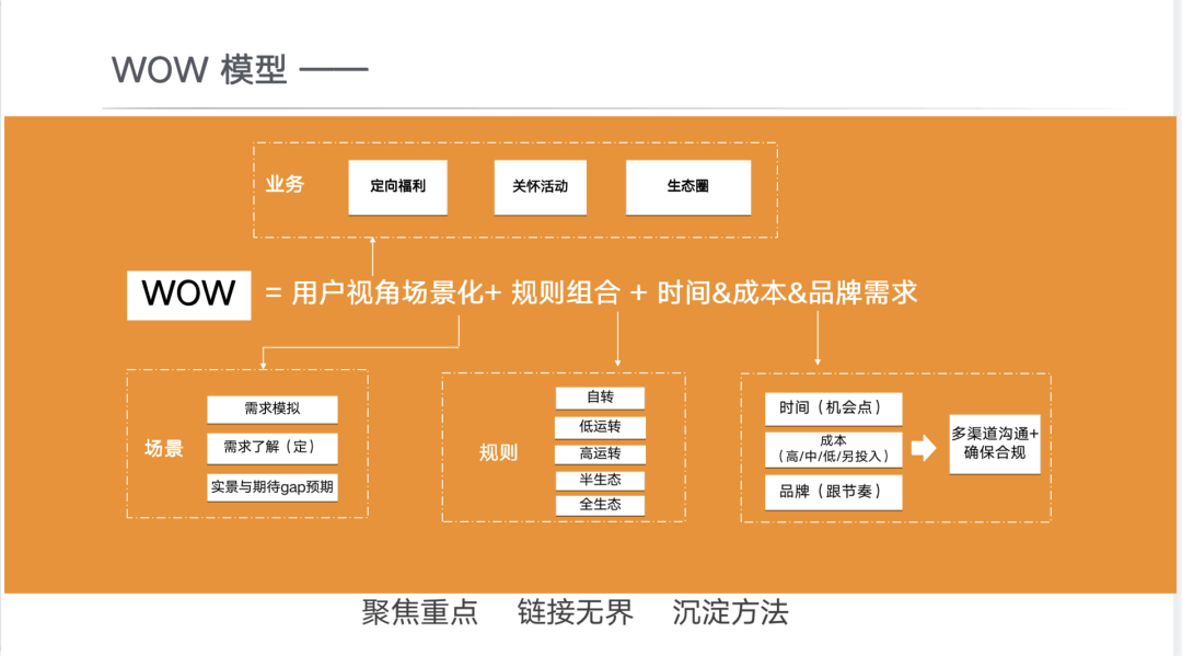为此,他们打磨出了自己的用户体验模型来助力打造行政品牌特色,并为之命名为WOW模型,期望用做一件期待的关怀活动落地以后得到同学WOW那一瞬间的幸福感激励团队,正向循环。