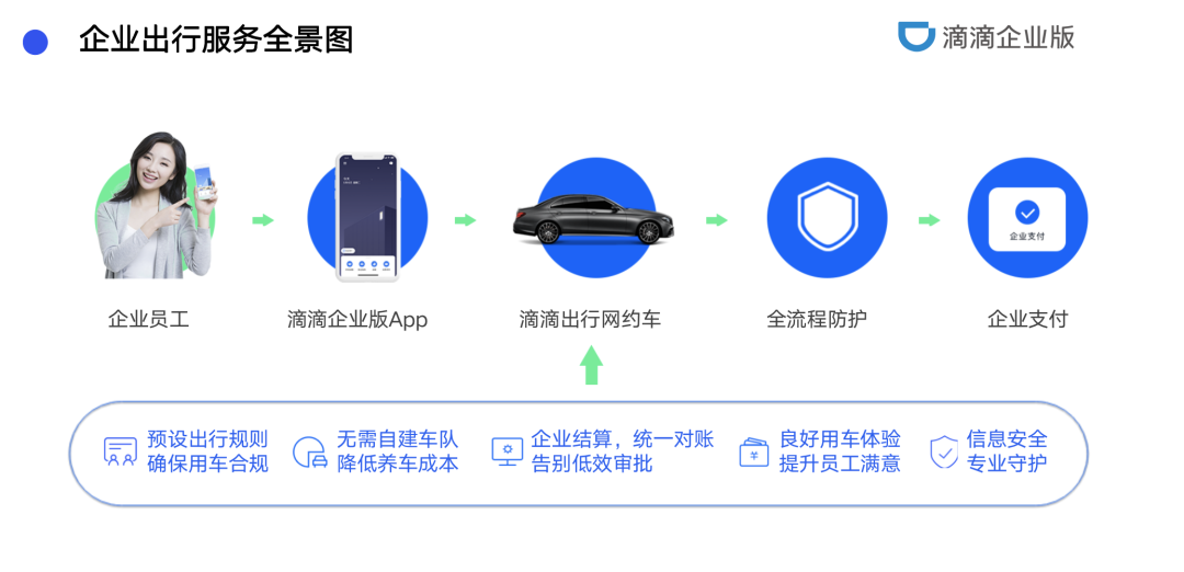数据显示,使用滴滴企业版可以降低10%的出行成本,降低10-15%的人效成本,提升85%的满意度,使用的企业有30万+,服务用1700万+,可以实用管理效率和员工满意度的双赢。
