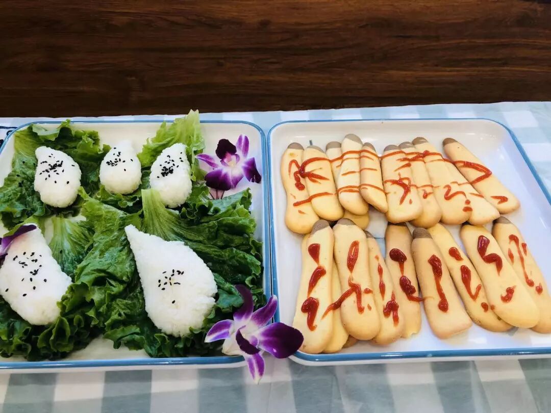 还有手指饼干(我觉得下午茶的更逼真)、奶油蛋糕、幽灵饭团,我不信填不满你的胃