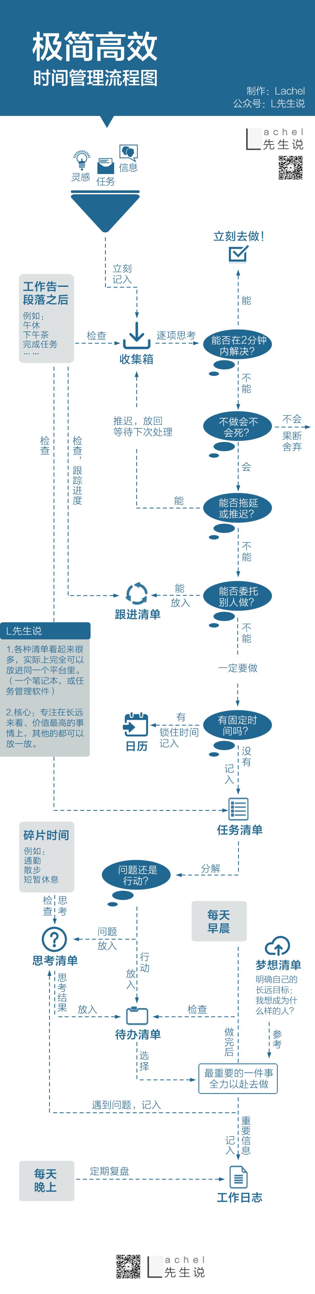 这是我 2019 年自己绘制的一张图,汇总了自己的心得和经验,不妨结合这篇文章一起看,相信能帮助你更好地理解「时间管理」这回事。