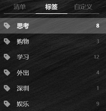 最简单的过滤箱,就是标签。举个我自己的例子:我的任务清单里面,会对不同的任务打上标签,比如:购物,学习,娱乐,外出,思考……