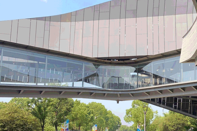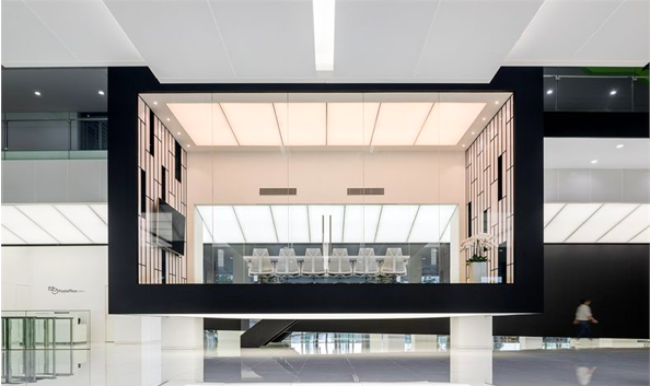 两栋楼之间,一条玻璃长廊横穿而过,恢弘大气。
