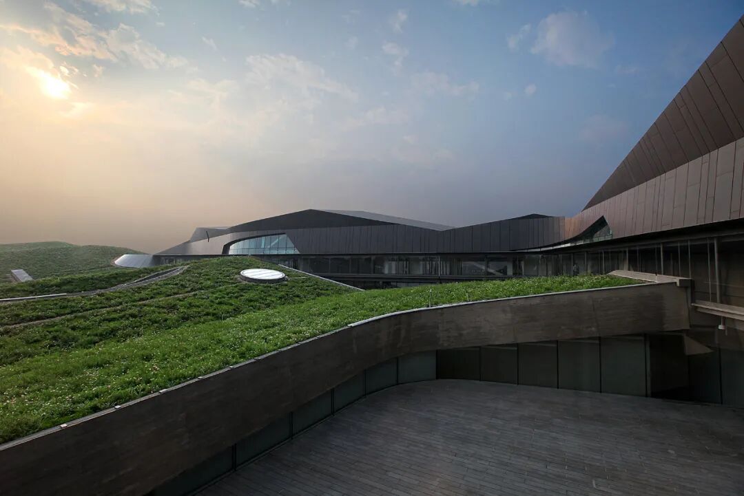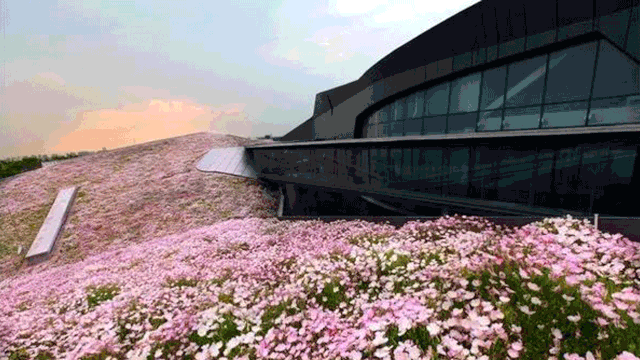 除了广阔的人工湖,园区还拥有1.5万平、也是国内最大的屋顶绿化带,被誉为“中国最美屋顶花园”。“建筑从地上长出来”,这是巨人网络所追求的人与自然和谐共处的理念。每年五月,逢屋顶月见草花期,会有很多影视剧组、建筑设计师等前来取景、参观。俯瞰园区,正中有一条黑色巨龙蜿蜒盘踞。这正是由曾获建筑界最高奖项“普利兹克奖”的设计师——汤姆·梅恩亲自操刀设计的巨人园区一期主建筑。