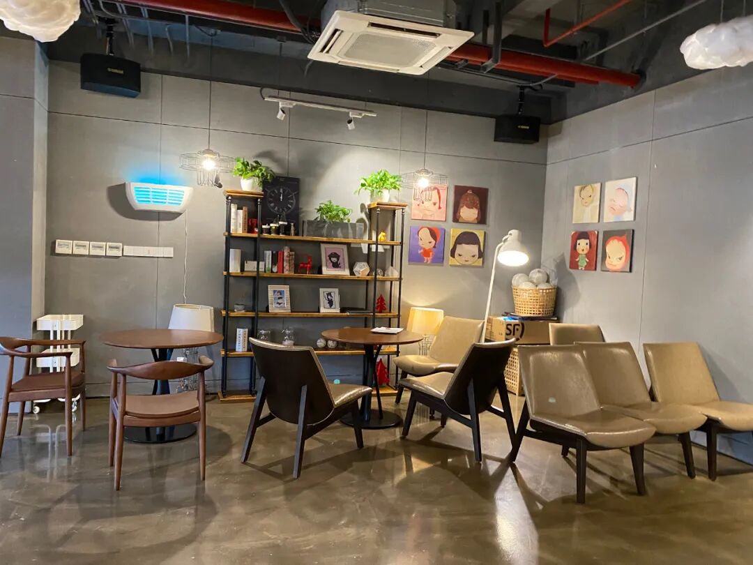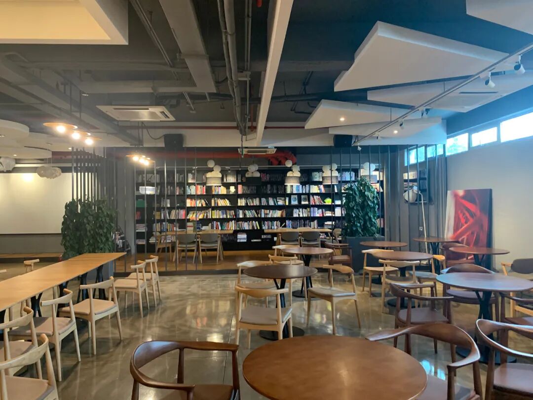 巨人园区的餐厅是中西分开的,西餐厅环境幽静。胡桃木色的家具让整体的氛围静谧又优雅,不仅适合就餐,这里也会定期举办沙龙活动。
