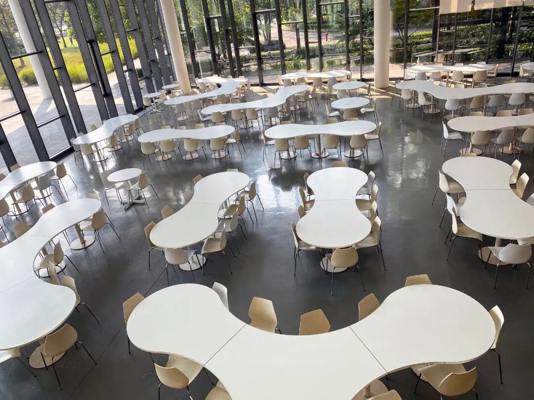 别致的桌椅造型,实际是源自企业logo的创意,不仅造型新鲜有趣,而且十分实,同时用也是企业文化的展现。