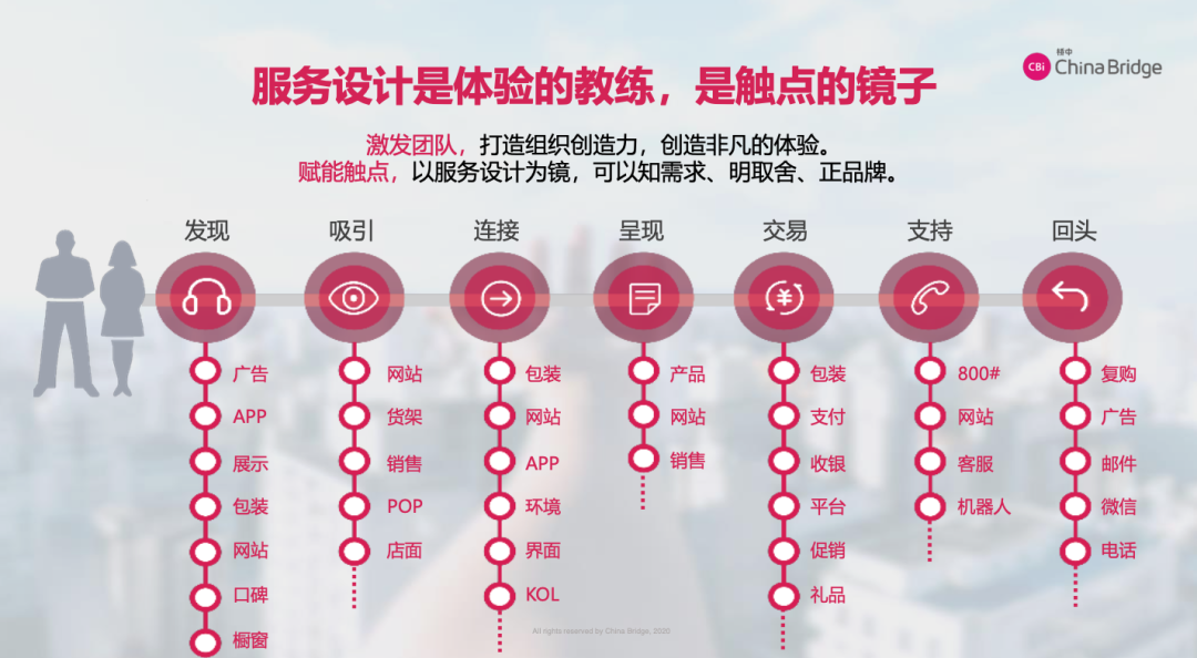 服务设计的整个系统包括服务战略、服务渠道客户旅程、服务瞬间、服务亮点,各类触点的设计,服务准则和应用标准等,服务设计,可以为大家打开新经济时代企业内部运营的新思维。