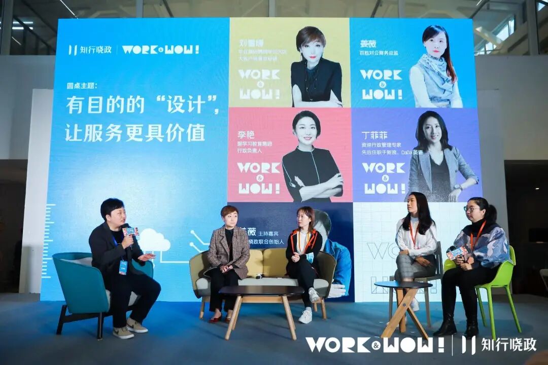 在现场的圆桌讨论环节,爱学习教育集团行政负责人李艳女士、资深行政管理专家,先后任职于新浪、DaDa 英语丁菲菲女士、华住酒店集团华北大区大客户销售总经理刘雪娜女士、百胜对公商务总监姜薇女士、知行晓政联合创始人关薇女士针对“如何操作才能让服务更有价值,提升员工的满意度?”给出了他们的精彩答案。