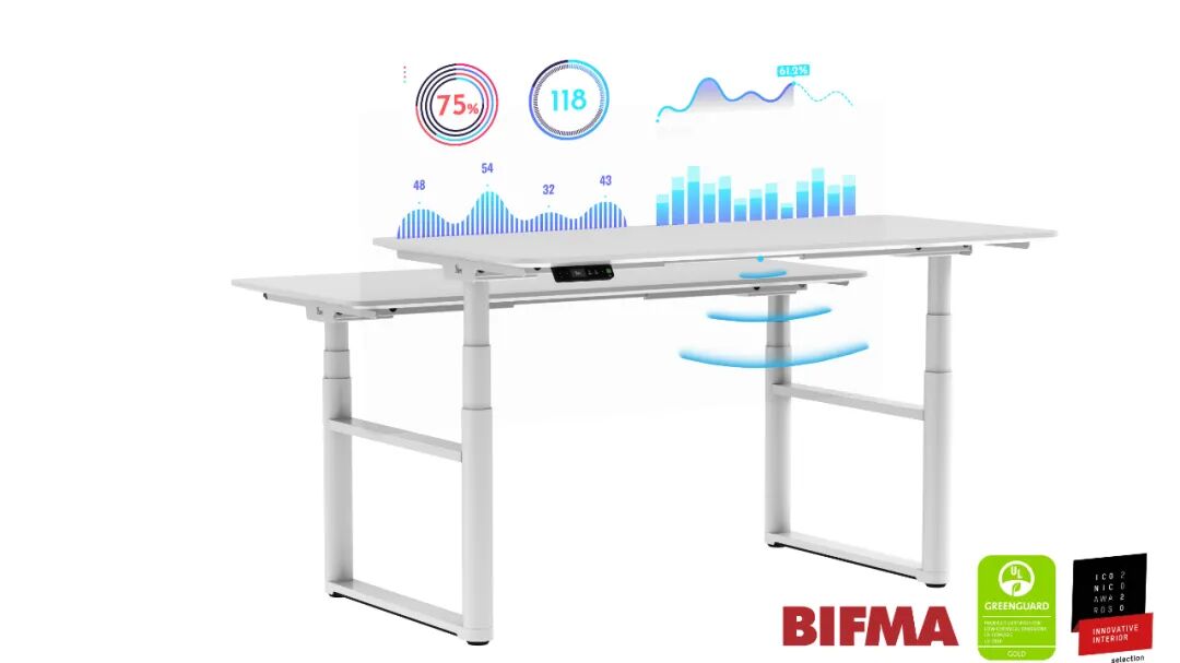 但是,只有人体工学还远远不够,企业更加需要一张拥有多种感官交互与感知能力的数字化升降工位。 智能提醒、数据化引导,给员工提供更健康的工作方式,为企业效率注入全新动力。