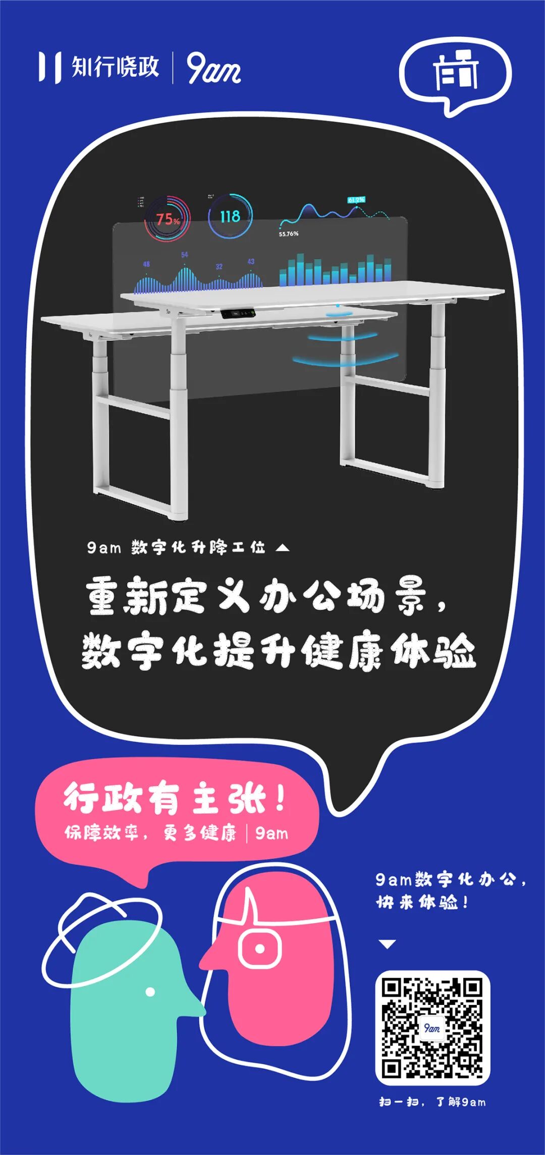 主推:9am ATOM BEACH 数字化升降工位获得德国标志性设计大奖;通过GREENGUARD GOLD、 BIFMA最高等级认证智动感知,数据护航!9am数字化升降工位,开启更健康、高效的数字化工作方式。△ 搭载9am Up™ 智能交互系统,多种感官交互健康提醒方式,避免久坐;