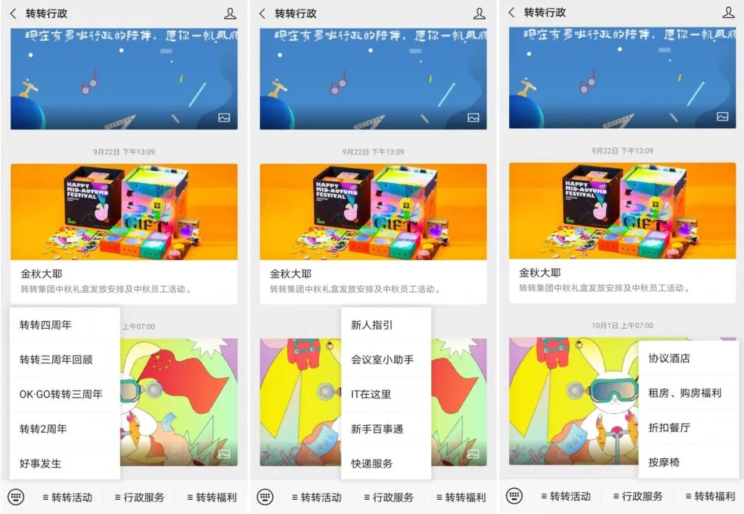 尤其对于工作内容繁多、员工基数庞大的企业行政来说,通过行政公众号不仅能够有效传播信息、公布活动,而且还能把很多基础行政服务转移到公众号上,大大节省行政工作成本,提高效率。
