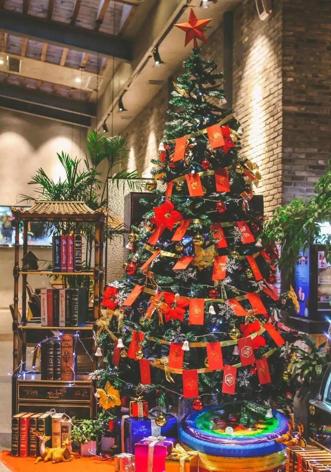 既然是圣诞节红包自然少不了,行政可以在公司的圣诞树上挂上金额不等的红包,等到节日当天大家排队抽取幸运红包。