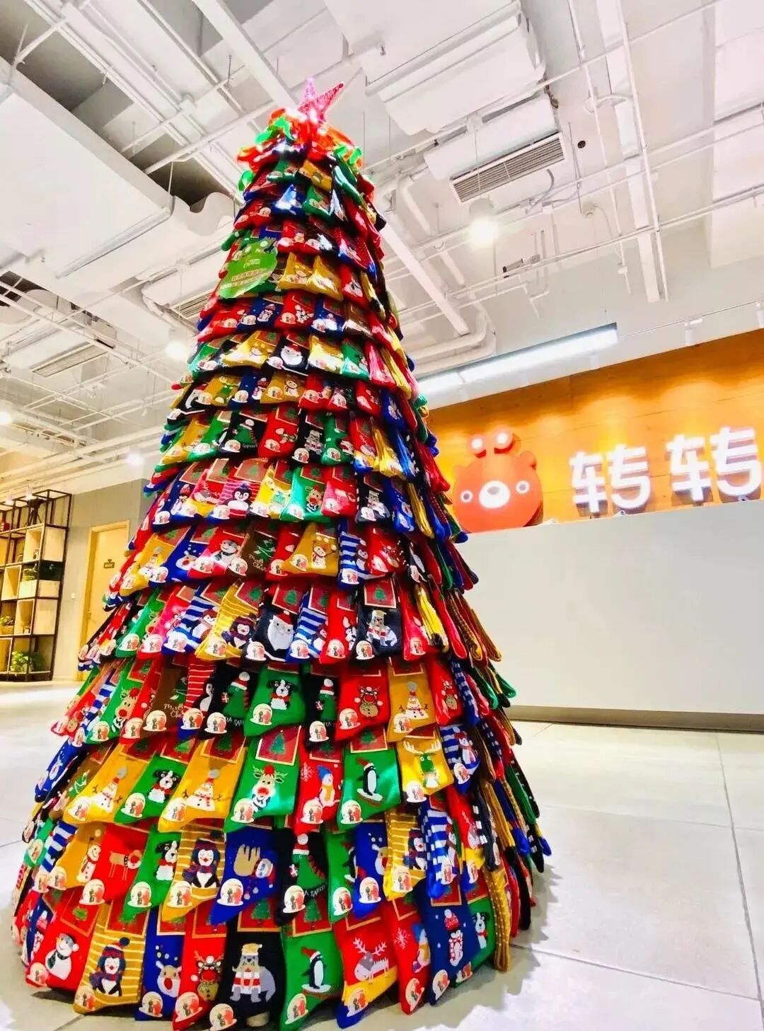 承包了员工一整年袜子的袜子圣诞树,来自转转的手笔。