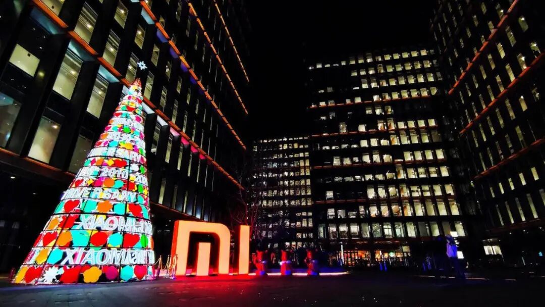 小米这棵科技感十足的圣诞树照亮了整个园区,大大的米字logo在寒冷的夜晚特别醒目,仔细一看还有三个圣诞卫士守护着米家人,威严中带点可爱。