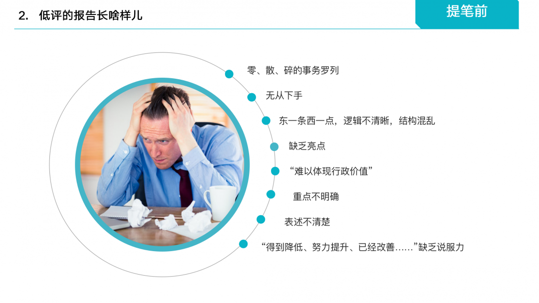 b.逻辑不清楚:思维不清,逻辑混乱,这份工作报告如何让人看下去?