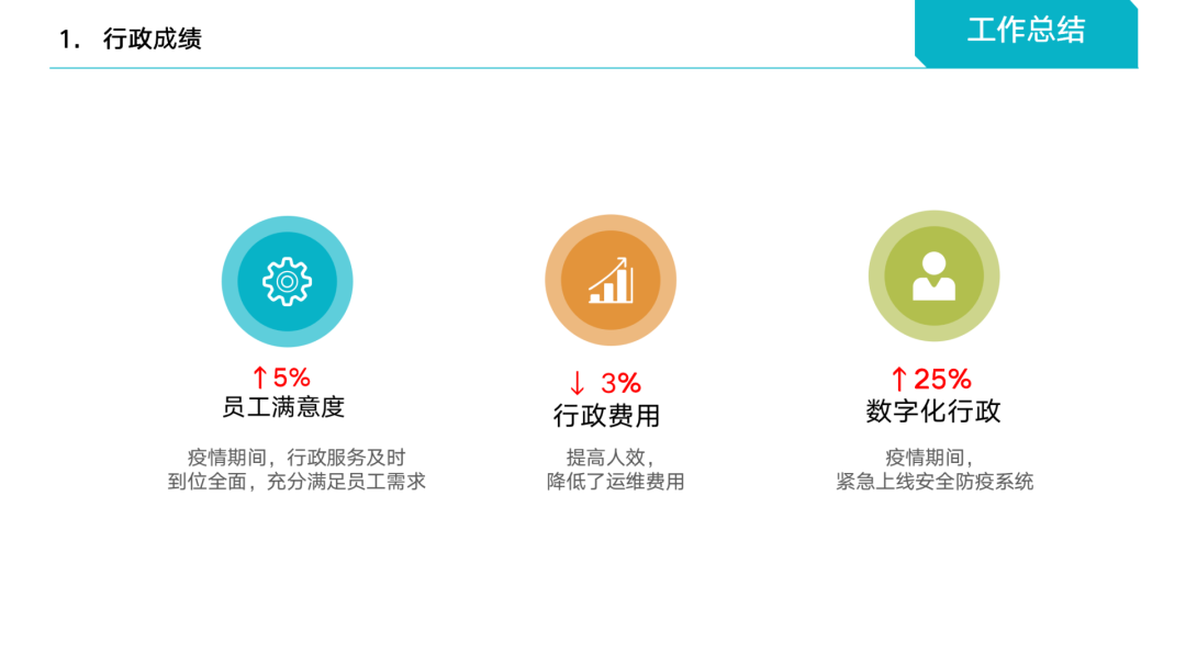 第一,重点突出行政业绩:包含梳理业务、业绩是否达标、完成哪些项目、工作进展等。